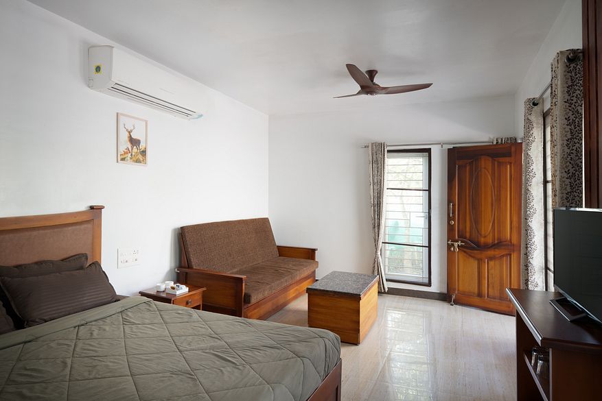 Chalet in Mudumalai is set in a private and cozy corner of the Deer Meadows campus, a wildlife resort in Bandipur Mudumalai. Large bay windows provide clear views of the forest, while the private balcony offers a marvelous view of the greenery.
