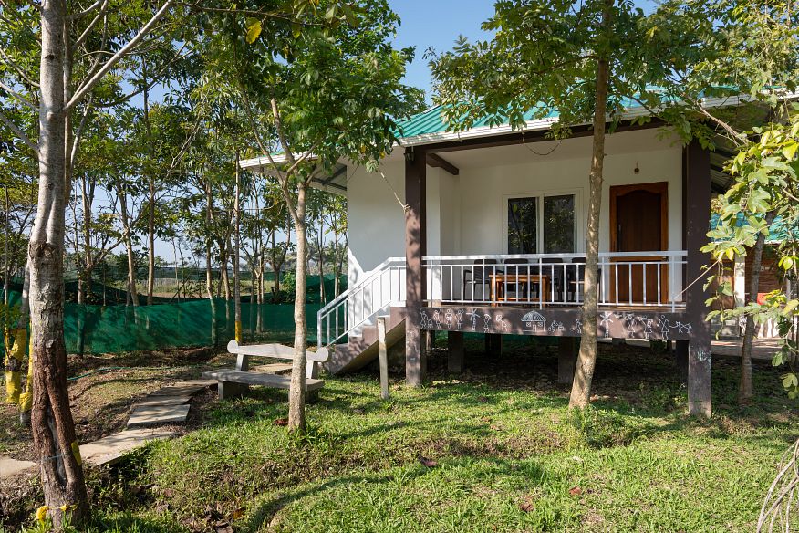 With extra beds, a chalet can accommodate up to 4 people. It is ideal for 2–4 guests or a family with 2 adults and 2 kids who want privacy and to observe wildlife closely during evenings and early mornings. The chalet is located 200 m away from common areas and the dining hall.